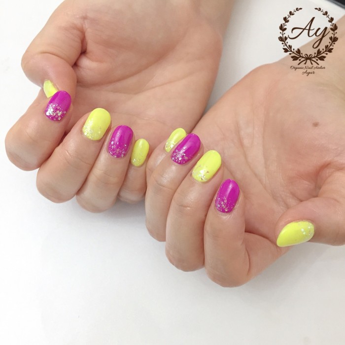 自爪をケアするジェルネイルで、旬のネオンカラーを楽しむ