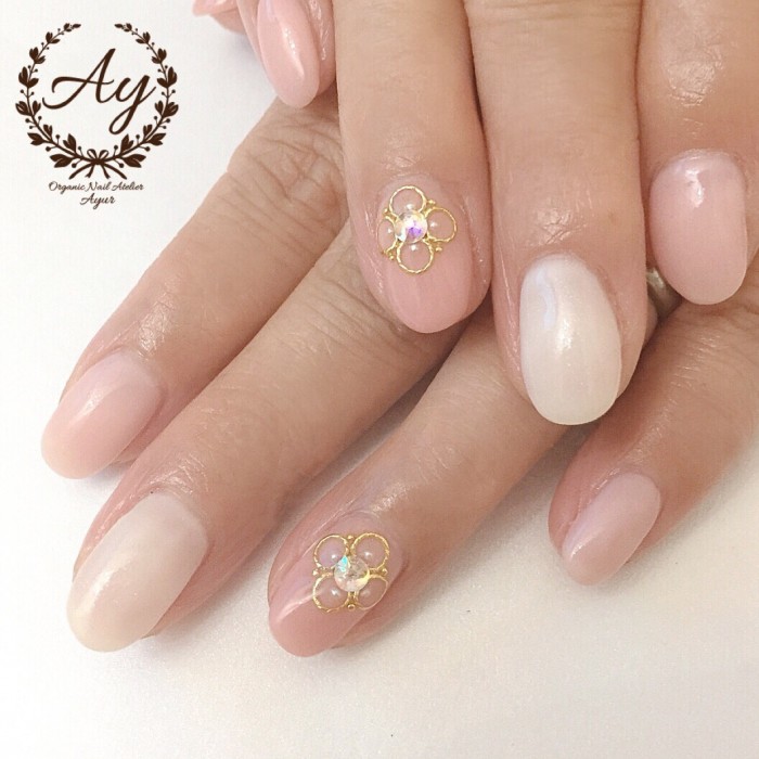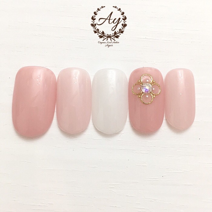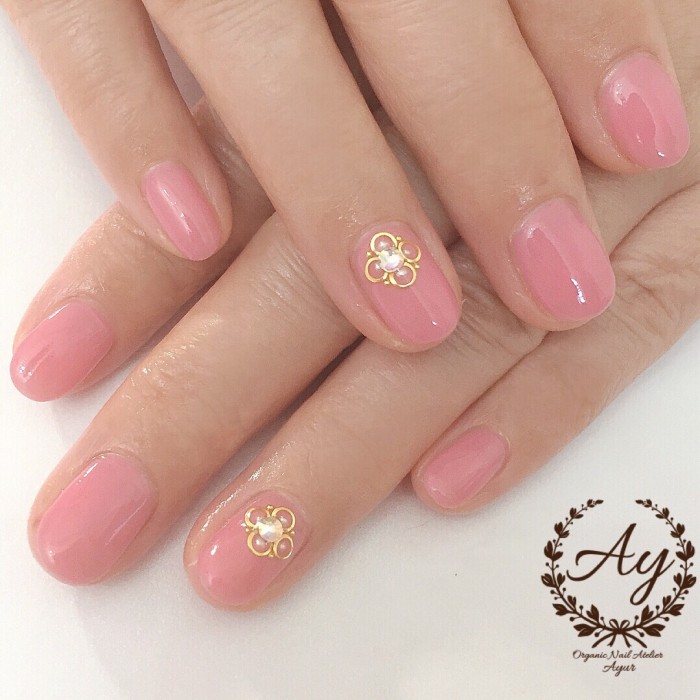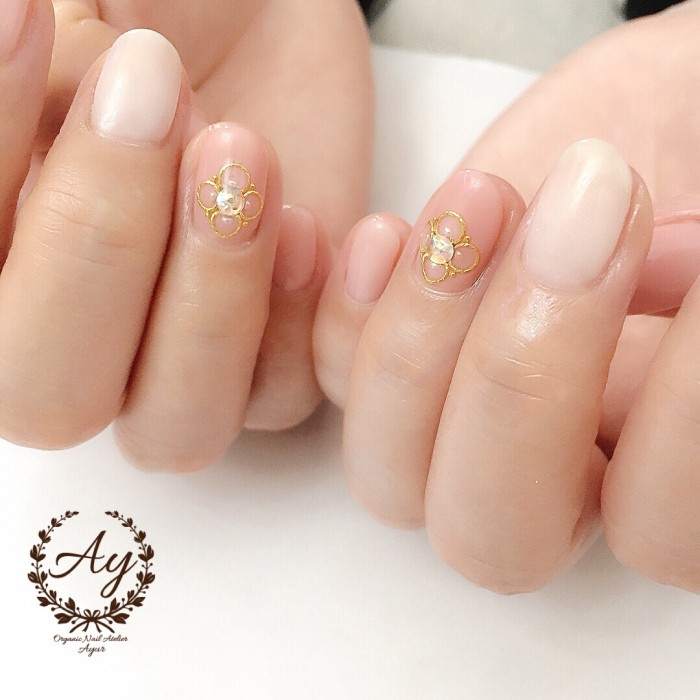 オーガニックジェルコース¥4800のデザイン「ワンカラー3色&ワンポイントストーンアート」です