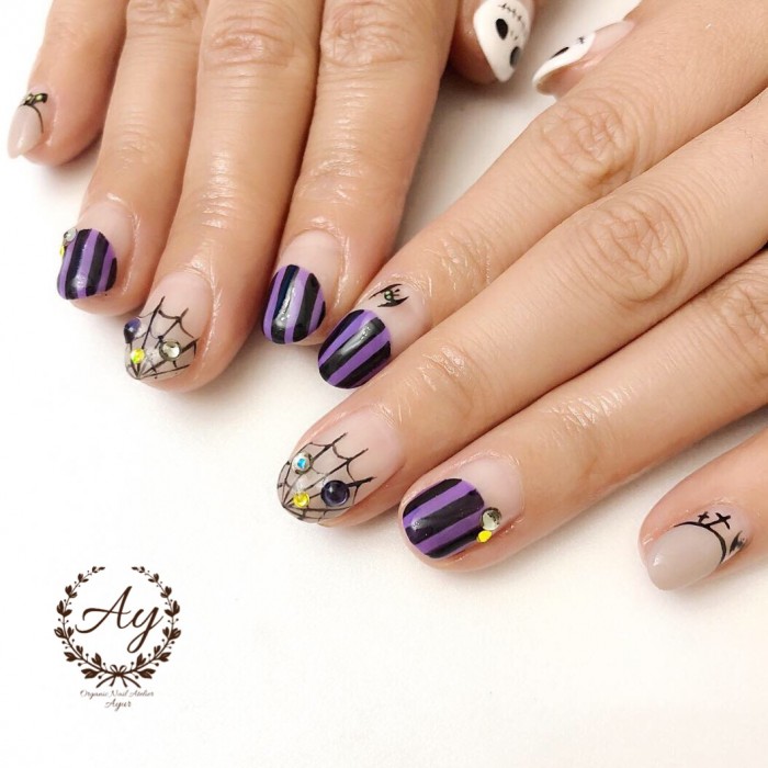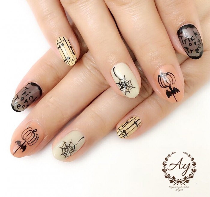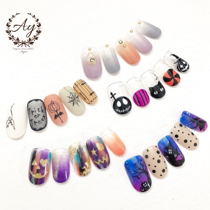 お仕事の都合で左手だけにハロウィンデザインをされたお客様もいらっしゃいました。
